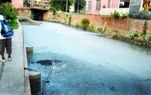 昨日上午,記者趕到位于石井潭村附近的這家垃圾壓縮站外,此時之前銷毀的盒裝牛奶外包裝已經(jīng)全部打包運(yùn)往垃圾場填埋,垃圾站內(nèi)的地面也已經(jīng)清洗干凈,看不到之前這里曾銷毀盒裝牛奶的痕跡。但就在垃圾站后方的大方涌內(nèi),仍然可以清晰地看到,原本較黑的水面之上,混雜著厚厚一層乳白色的液體,遠(yuǎn)遠(yuǎn)望去白茫茫一片。