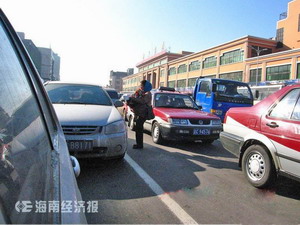 在海口市城區(qū)主要街道口,每當紅燈亮起車輛停下之際,就會有一些人竄到車流當中,他(她)們用手中拿著的碗或托著的缽,逐車挨個敲打著車窗玻璃,目的是為了討要鈔票。