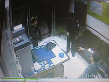 此時,站在監(jiān)控設備前的陳紅發(fā)覺到監(jiān)控設備的存在,四處尋找監(jiān)控設備導線。當他找到電源插頭后,死勁將插頭拔下,視頻錄像立即中斷。此后,檢查站用攝像機拍攝的景象一片狼藉。
