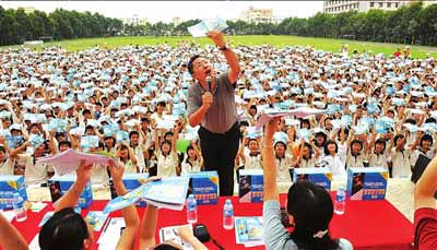 2008年6月3日下午3點,李陽把他的“瘋狂”帶到中山市坦洲中學(xué),與學(xué)校的全體師生來了一場“瘋狂”英語體驗。