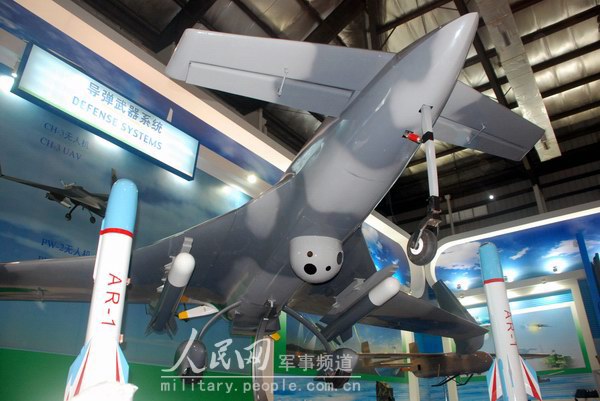在航天科工的展臺上,首次展出CH-3長航時無人機,據(jù)現(xiàn)場有關(guān)人士介紹,該款已經(jīng)研發(fā)成功并投入使用的無人機,是軍方公布的最先進(jìn)的一款無人偵察機!霸摍C的監(jiān)控范圍可以達(dá)到方圓400公里!”