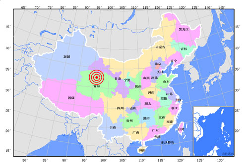 中新網(wǎng)11月10日電 據(jù)中國地震臺網(wǎng)測定,北京時間2008-11-10 09:22 在青海省海西蒙古族藏族自治州(北緯37.6,東經(jīng)95.9) 發(fā)生6.3級地震。