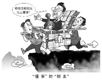 “跟屁蟲”,是個(gè)很不雅的詞,指老跟在別人背后的人。詞典上說,此語“含厭惡意”。但是一些領(lǐng)導(dǎo)干部,對“跟屁蟲”,尤其是請自己關(guān)照幫忙、向自己進(jìn)貢送錢的老板,卻絲毫沒有厭惡的意思,相反,把他們當(dāng)成朋友,喜歡這樣的“跟屁蟲”在自己身邊吹喇叭抬轎子,經(jīng)常拜訪自己,對自己“表示感謝”。領(lǐng)導(dǎo)干部要慎重對待朋友交往,擇善而交,恐怕首先要遠(yuǎn)離“跟屁蟲”、提防“跟屁蟲”,否則你就會(huì)成為下一個(gè)王建國。