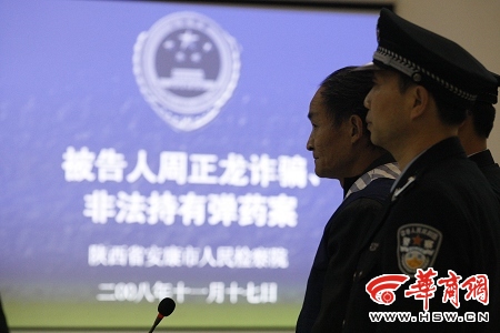 周正龍?jiān)p騙、非法持有彈藥案二審17日上午在安康市旬陽縣人民法院公開開庭審理(王甲鑄 攝)