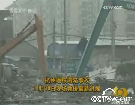記者王克生:杭州地鐵工地?fù)岆U施救工作還在緊張進(jìn)行,到目前救援人員發(fā)現(xiàn)的還是那七名遇難人員,初步核實(shí)還是有14個人下落不明,根據(jù)目前掌握的情況和現(xiàn)場的情況分析,因?yàn)樗莸牡胤揭呀?jīng)完全被掩埋了,另外里面還有水,所以這14個人生還的希望已經(jīng)不是特別大了。經(jīng)過昨天晚上和今天上午連夜不斷的工作,原先倒塌坑內(nèi)橫七豎八的鋼管已經(jīng)清除了,根據(jù)現(xiàn)場救援專家的意見,救援的重點(diǎn)是盡快清理塌陷厚約大約10米左右的瘀泥等雜物,防止可能出現(xiàn)對被困人員身體的傷害,救援工作目前主要以人工開挖的方式為主,可能的情況下再動用一些大型的施工設(shè)備,為了加快進(jìn)度,救援人員用水沖刷堅固,然后把泥漿泵稀釋地面,估計稍后會發(fā)現(xiàn)遇難人員。