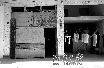 駱效計(jì)居住的房子,門和墻是自己用木板修的。