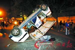 記者昨晚8時左右趕至現(xiàn)場,發(fā)現(xiàn)路口已經(jīng)聚集了數(shù)十名警察和治安員。當(dāng)記者剛剛走進(jìn)開達(dá)玩具廠,就發(fā)現(xiàn)在路邊綠化帶旁已經(jīng)有5輛巡邏摩托車被放倒在地,車燈完全被砸壞,再往前行不到20米,就發(fā)現(xiàn)有2輛巡邏警車被掀翻砸爛在地,初步估計有近千人在工廠門口聚集。記者在人群中前行,沿路都是被砸爛的警車玻璃碎片。目擊者告訴記者,事故發(fā)生在晚上7時左右,目前已有5人受傷。