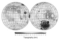 日前,由嫦娥一號(hào)衛(wèi)星測控系統(tǒng)VLBI分系統(tǒng)總體技術(shù)主任設(shè)計(jì)師、中國科學(xué)院上海天文臺(tái)研究員平勁松、黃倩,北京航天飛行控制中心唐歌實(shí)、曹建峰等人完成了全月球地形圖測繪,并在2008年第11期《中國科學(xué)G輯》上發(fā)表題為《基于嫦娥一號(hào)衛(wèi)星激光測高觀測的月球地形模型CLTM-s01》的論文,介紹利用嫦娥一號(hào)月球探測衛(wèi)星激光高度計(jì)數(shù)據(jù)得到的月球地形模型。