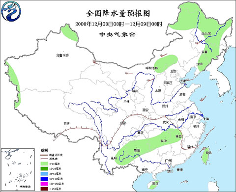 2008年12月8日8時(shí)—12月9日8時(shí)全國(guó)降水量預(yù)報(bào)圖
