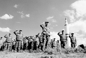 導(dǎo)彈官兵用角鋼做成發(fā)射臺(tái),用床板釘成配氣箱,用柳條編成推力室,用木頭制成程序配電器,用黃泥制成陀螺儀,用蘿卜刻成爆炸器……就是在這樣一窮二白的條件下,戰(zhàn)略導(dǎo)彈部隊(duì)克服重重困難前進(jìn),在大膽改革創(chuàng)新中發(fā)展,培育形成了攻堅(jiān)克難、勇于創(chuàng)新的精神,推動(dòng)第二炮兵建設(shè)跨越式發(fā)展。