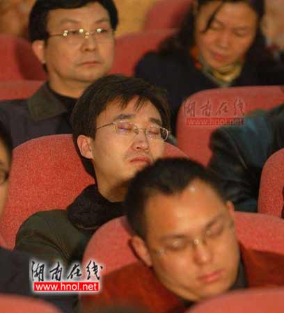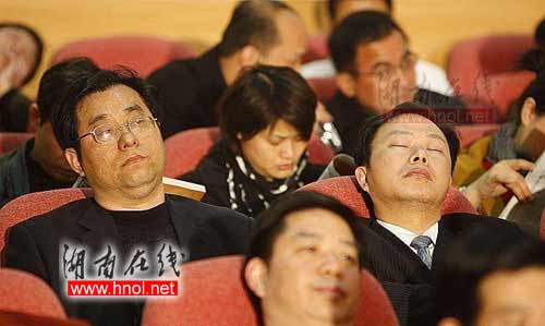 部分公務(wù)員會(huì)上睡覺被拍。
