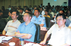 前天上午11點(diǎn),記者來到科普畫廊前,找到了市民說的“睡覺照”。這是一組關(guān)于打擊非法傳銷的宣傳資料。資料包含了云南省各地打擊非法傳銷的成績(jī)展示。在這組展示中,有一幅“打擊傳銷專項(xiàng)行動(dòng)電視電話會(huì)議”的圖片,從圖片上可以看出,這次會(huì)議是昭通市召開的。而在圖片正中間,有3人正襟危坐,中間一人雙手抱在胸前,眼睛卻是閉著的。就是這么一閉,就引來了多數(shù)市民的好奇和觀望?破债嬂忍幵谌顺奔械拇浜,經(jīng)過的市民很多,不少市民駐足在櫥窗前指指點(diǎn)點(diǎn),議論著這幅圖片。