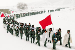 王志校:我團(tuán)這次冬季適應(yīng)性訓(xùn)練有意識地選擇在2008年的最后一天。昨天晚上,部隊提前舉行了迎新年活動,之后立即啟動應(yīng)急拉動預(yù)案,在短短幾小時內(nèi)做好了整建制出動的一切準(zhǔn)備。明天就是新年第一天,按照總部部署安排,全軍將依照新大綱正式組訓(xùn),我們這次訓(xùn)練,既是對部隊?wèi)?yīng)急反應(yīng)能力的一次檢驗,也是一次按綱施訓(xùn)的“熱身”。