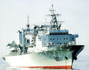 “微山湖”號綜合補給艦,是我國自行設(shè)計建造的大型補給艦,排水量近3萬噸,可同時對3艘艦艇和1架直升機進行補給,可自行攜帶1架直升機。該艦先后圓滿完成出訪巴基斯坦、印度、泰國、俄羅斯、英國、西班牙、法國、日本等艦艇伴隨保障任務(wù)以及遠航訓(xùn)練和聯(lián)合軍演,目前已安全航行近10萬海里。