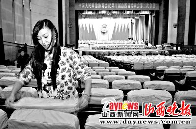 今日上午8時(shí),記者在本次大會(huì)的會(huì)場(chǎng)之一太原市工人文化宮看到,條幅已經(jīng)拉起,拱門也已豎起。工作人員正在更換白色座套,主席臺(tái)上已經(jīng)擺滿鮮花,準(zhǔn)備基本就緒。在委員的接待賓館之一政協(xié)賓館,會(huì)務(wù)、保衛(wèi)工作人員也已經(jīng)就位,部分代表正在辦理報(bào)到手續(xù)。委員張書(shū)慶告訴記者,從登記到入住只花了兩三分鐘,他準(zhǔn)備用剩下的時(shí)間再研究一下自己的提案。
