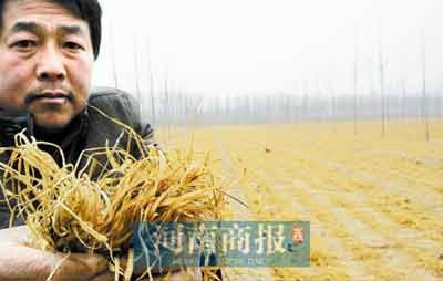 一位姓趙的農(nóng)民隨手拔起一撮麥苗,看不出一絲綠色。“現(xiàn)在的麥苗用火一點(diǎn)就著,像干柴!壁w師傅說(shuō),附近沒(méi)有水井,雖說(shuō)距惠濟(jì)河不到300米,但河水污染嚴(yán)重,即使?jié)菜矔?huì)“毒死”麥苗。