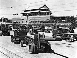 曾參與新中國多次國慶閱兵的北京軍區(qū)原炮兵司令部處長張軍告訴記者,開國大典受閱炮兵部隊裝備,全是從日本侵略軍和國民黨軍隊手里繳獲的戰(zhàn)利品,其中參加閱兵的90野炮和38野炮,不僅身管短,兩個輪子有的還是木輪子包鐵皮的。盡管當時我軍武器裝備還很落后,但場面恢宏、壯觀,大氣磅礴,全體受閱將士以昂揚精神狀態(tài)、威武雄壯陣容出現(xiàn)在國人面前,并向世界發(fā)出了宣言:中國人民解放軍有信心、有能力保衛(wèi)新生的人民政權(quán)!正因為如此,開國大閱兵具有極為重要的歷史意義。