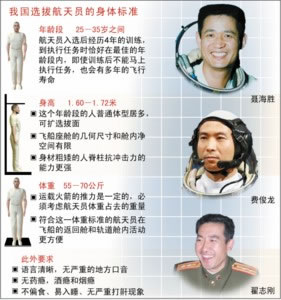 航天專家介紹,此類航天員選拔主要針對我國載人航天戰(zhàn)略第三步,為建造長期有人照料的發(fā)射空間站做選拔,最早或于2015年前飛天。與第一批航天員選拔標(biāo)準(zhǔn)相比,此次選拔將更側(cè)重對文化知識(shí)水平的考查,同時(shí)極有可能出現(xiàn)女航天員的身影。在不遠(yuǎn)的將來,我國航天員中也將出現(xiàn)科學(xué)家的面孔。