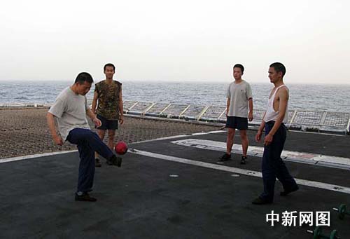 甲板足球訓(xùn)練。中新社記者 孫自法 攝