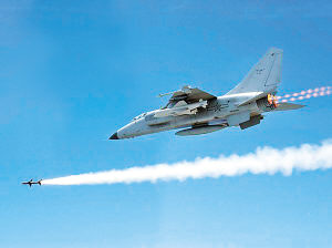 3月中旬,某艦隊航空兵飛行團數(shù)架新型“飛豹”戰(zhàn)機急速而起,穿云破霧直撲作戰(zhàn)海域。發(fā)現(xiàn)目標,該飛行團團長李軍迅速鎖定目標,按下發(fā)射按鈕,導(dǎo)彈如銀空利箭,直奔“敵”艦……