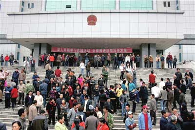 昨天早晨不到8點(diǎn),在習(xí)水縣法院大樓前,除了新華社、中央電視臺(tái)、中國青年報(bào)等眾多媒體記者外,還聚集了大量群眾!傲(xí)水出了這樣大的丑聞,很丟臉!币幻(dāng)?shù)厝罕娬f,他想看看,究竟是一些什么樣的人這樣喪盡天良。