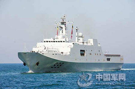 “昆侖山”艦,舷號998,是我國自主研制的兩棲船塢登陸艦,總長210米,最大寬度28米,正常排水量18500噸,是我國目前噸位最大的水面作戰(zhàn)艦艇。該艦的服役填補了我國國內兩棲船塢登陸艦的空白,更新了我軍傳統(tǒng)登陸作戰(zhàn)理念,標志著我海軍在中遠海投送兩棲作戰(zhàn)兵力的能力有了較大程度的提升。據了解,此次海上閱兵,該艦搭載了數百名海軍陸戰(zhàn)隊員。