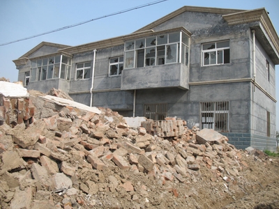 農(nóng)場(chǎng)工人楊洪林告訴記者,2006年2月,他和60余戶十八隊(duì)的拆遷戶,一起被安置到二隊(duì)居住。蓋房前,農(nóng)管委拆遷工作組的工作人員曾發(fā)出通知,說(shuō)安置地上要蓋別墅,每平方米750元,想要的報(bào)個(gè)名,很多人都積極響應(yīng)!昂髞(lái)說(shuō)別墅要改建成歐式風(fēng)格,價(jià)錢(qián)漲至1000多元,大伙還是愿意買(mǎi),可別墅蓋成后卻沒(méi)有公開(kāi)銷售的音信了。后來(lái)才知道,這些別墅落到當(dāng)官兒的手里,沒(méi)有一套是我們的。”楊洪林說(shuō)。