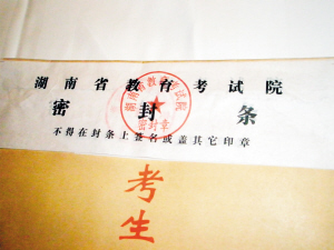 昨天,記者還從羅彩霞處得到了她2004年檔案袋的一組照片。檔案袋正面上方有湖南省教育考試院的密封條和考試院的印章,值得注意的是,密封條的下方還有一層相同的密封條,說明此檔案袋曾被人拆閱過。檔案背面貼有2004年羅彩霞的高考志愿表,經(jīng)羅彩霞證實,背面的簽名是她本人的。