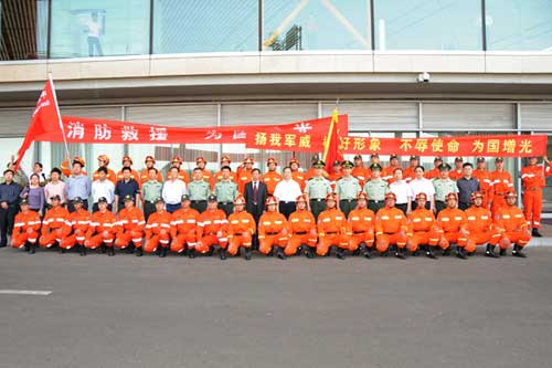5月18日,中國(guó)消防應(yīng)急救援隊(duì)受命從北京出發(fā),赴俄羅斯參加上海合作組織“博戈羅茨克”聯(lián)合救災(zāi)演練,國(guó)家民政部副部長(zhǎng)羅平飛、救災(zāi)司鄒銘司長(zhǎng),公安部消防局局長(zhǎng)陳偉明、副局長(zhǎng)朱力平,中國(guó)地震局趙和平副局長(zhǎng)等有關(guān)同志到首都機(jī)場(chǎng)為參加演習(xí)的救援隊(duì)員,一同前往參加演習(xí)的還有中國(guó)地震國(guó)際救援隊(duì)。