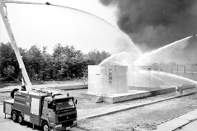 15時(shí)15分,就在圍剿接近尾聲時(shí),現(xiàn)場突然出現(xiàn)意外,一名殘余“恐怖分子”引燃身上所攜帶炸藥,將廠區(qū)內(nèi)兩個(gè)化工原料儲(chǔ)存罐炸毀,造成大量有毒化學(xué)氣體泄漏。廠區(qū)內(nèi)頓時(shí)濃煙滾滾,火光沖天。面對緊急情況,消防力量馬上出擊,展開滅火、化學(xué)品罐堵漏、毒氣源稀釋等工作。同時(shí)環(huán)保、氣象和衛(wèi)生力量也馬上進(jìn)行空氣監(jiān)測、中毒人員緊急救治等工作。大約半小時(shí)后,人質(zhì)和中毒人員全部得到緊急救治,廠區(qū)周圍有毒氣體濃度也降到安全值以內(nèi),周邊地區(qū)和首都北京的安全得到了保障。演習(xí)結(jié)束。