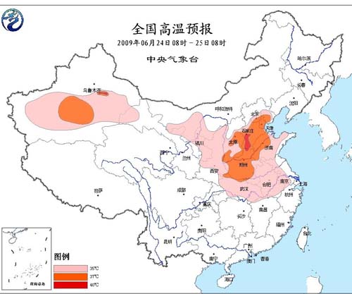 中央氣象臺今天早晨六點鐘繼續(xù)發(fā)布高溫預(yù)報:預(yù)計,今天白天,河北中南部、京津地區(qū)、山西中南部、山東大部、河南、江蘇西部、安徽、湖北大部、陜西中北部、寧夏北部、內(nèi)蒙古西部、新疆南疆盆地等地有35℃以上的高溫,其中,河北中南部、京津部分地區(qū)、山西東南部、河南、山東西部以及南疆盆地等地的部分地區(qū)最高氣溫可達37~39℃,河北西南部的局部地區(qū)溫度可達40℃。