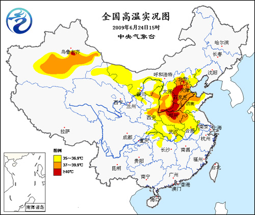 中新網(wǎng)6月24日電 據(jù)中國(guó)氣象局網(wǎng)站消息,中國(guó)華北、黃淮等地今日出現(xiàn)今年首次大范圍高溫天氣,石家莊、鄭州的最高氣溫甚至超過41℃。