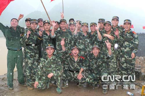 廣西羅城卡馬水庫右壩首泄洪槽在今天7時和中午12時15分兩次爆破之后,泄洪底口堅硬的混凝土護(hù)墻已被分解,但要過水還需加大開挖深度。13時,武警水電一總隊開挖突擊隊在三支隊支隊長朱國良的帶領(lǐng)下,冒雨展開反鏟清碴突擊戰(zhàn)。經(jīng)過5個小時的突擊行動,水電官兵成功開挖出泄洪槽。