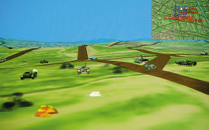 “我們正在組織官兵利用戰(zhàn)術(shù)對抗模擬訓(xùn)練系統(tǒng)開展訓(xùn)練!甭瞄L趙立榮告訴記者。為改進(jìn)裝甲分隊(duì)?wèi)?zhàn)術(shù)訓(xùn)練手段,提高按綱施訓(xùn)質(zhì)量,該旅與石家莊機(jī)械化步兵學(xué)院聯(lián)合開發(fā)了全軍首家裝甲步兵戰(zhàn)術(shù)對抗模擬訓(xùn)練系統(tǒng)!霸撥浖到y(tǒng)是以構(gòu)建1∶1000的戰(zhàn)場地形環(huán)境和車輛、人員模型為基礎(chǔ),所有參訓(xùn)人員在三維虛擬戰(zhàn)場上訓(xùn)練,其所聽、所見均與實(shí)車在現(xiàn)地作戰(zhàn)時一樣!