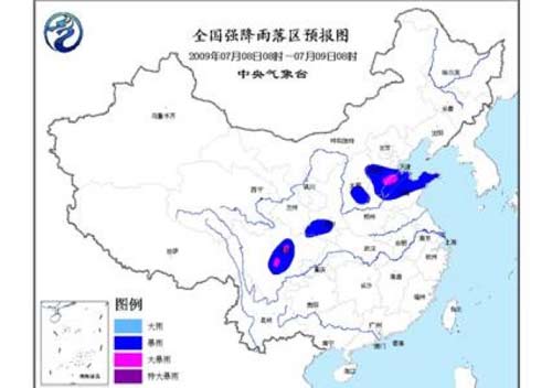中新網(wǎng)7月8日電 中央氣象臺(tái)8日06時(shí)發(fā)布暴雨橙色警報(bào):預(yù)計(jì),今天白天到夜間,川西高原東部和四川盆地西部、陜西南部、山西南部、河北南部、山東中北部和山東半島等地有 暴雨,其中,四川盆地西部、河北東南部、山東北部部分地區(qū)有大暴雨。