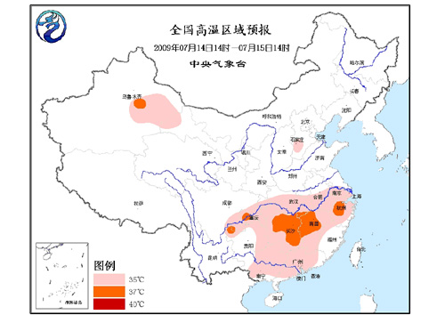 中新網(wǎng)7月14日電 據(jù)中國氣象局網(wǎng)站消息,中央氣象臺14日繼續(xù)發(fā)布高溫橙色警報(bào):預(yù)計(jì),今天下午到明天中午,江淮南部和西部、江漢大部、江南大部、華南中北部、四川盆地東部、重慶、貴州東部、南疆東部等地將有35℃以上的高溫,其中,湖南中東部、江西西北部、浙江西北部、重慶西南部以及吐魯番盆地等地的部分地區(qū)最高氣溫可達(dá)37~38℃。