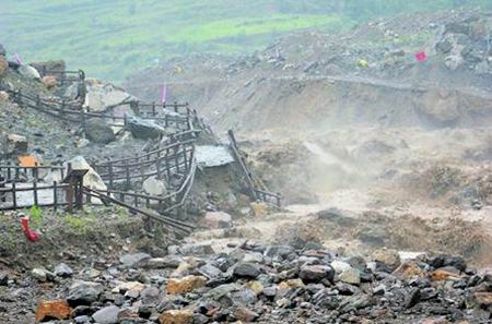 洪水沖毀青川縣東河口地震遺址公園景區(qū)內(nèi)部分游步道,淹沒(méi)東河口小學(xué)遺址;大雨造成的泥石流沖毀景區(qū)紀(jì)念廣場(chǎng),部分路面受損,山洪還沖走移動(dòng)小賣亭,遺址公園周邊農(nóng)戶房屋也不同程度受損。