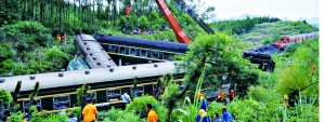 經(jīng)初步調(diào)查認(rèn)定,列車脫軌原因是由于連日持續(xù)強(qiáng)降雨造成山體崩塌掩埋鐵軌所致。