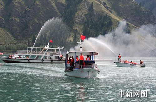 中新社烏魯木齊八月五日電 (記者 孫亭文)四日,新疆維吾爾自治區(qū)交通廳地方海事局在新疆著名旅游景點(diǎn)天山天池舉行水上安全應(yīng)急演習(xí)。據(jù)介紹,是次演習(xí)出動(dòng)各類船艇十余艘,參演人員近百名,是新疆水上舉辦的參演力量最強(qiáng)、參演科目最多、險(xiǎn)情較為復(fù)雜的一次綜合性水上安全應(yīng)急處置,是對(duì)水上安全突發(fā)事件發(fā)生時(shí)與地方各相關(guān)部門、單位密切協(xié)作配合的一次“實(shí)戰(zhàn)練兵”。