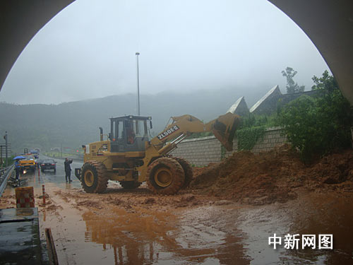 8月9日中午12點30分許,位于福建方向三都嶺隧道北洞口上方,由于山上大量雨水聚集形成的小型山洪的沖刷,導(dǎo)致將近30平方的泥石流順著山洪沖到了高速公路上,造成慢車道和部分快車道上泥石成堆,通行嚴(yán)重受阻,高速交警立即在福建方向的躺下出口實施封道分流,過往車輛繞行國道。(完)