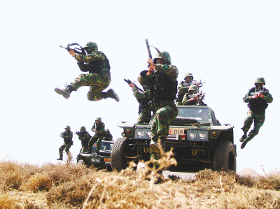 8月11日凌晨4時,蘭州軍區(qū)某“鋼鐵紅軍師”兵分數(shù)路,通過空中、鐵路、公路向沈陽洮南合同戰(zhàn)術訓練基地實施千里立體機動,拉開了全軍“跨越—2009”跨區(qū)實兵演練的序幕。