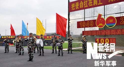 進(jìn)駐閱兵村后,為豐富官兵文化生活需要,方隊(duì)緊急組建了這支小型軍樂隊(duì),配備了大小號(hào)、長圓號(hào)、大小軍鼓等各種管弦和打擊樂器。雖然樂隊(duì)成員只有10人,卻個(gè)個(gè)藝精才高。他們有的畢業(yè)于藝術(shù)學(xué)校,民樂、西洋管樂樣樣皆通;有的來自嗩吶世家,"童子功"相當(dāng)深厚;還有的是國家一級演員的弟子,快板說得頭頭是道……個(gè)個(gè)都是方隊(duì)的文藝骨干。這支軍樂隊(duì)也成了方隊(duì)的文藝演出小分隊(duì)。