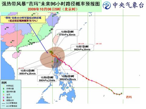 中新網(wǎng)10月6日電 中央氣象臺6日6時發(fā)布臺風(fēng)預(yù)報稱,今年第17號強(qiáng)熱帶風(fēng)暴“芭瑪”將以每小時10公里左右的速度向南偏東方向移動,并將于6日下午到夜間在菲律賓呂宋島北部沿海登陸,強(qiáng)度緩慢減弱。