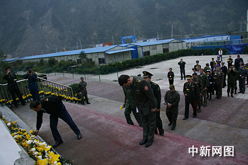 經(jīng)過簡單的接洽,武官們直接來到汶川縣漩口中學地震遺址,用軍禮向汶川大地震中的遇難者和英勇犧牲的烈士用表示崇高的敬意和深深的哀悼。在參觀遺址的過程中,軍官們紛紛用相機記錄著漩口中學的原貌,談論著汶川災后恢復重建的驚人速度。其中一位武官用還算流利的普通話說:“汶川的映秀非常漂亮!建設得太好、太快了!”