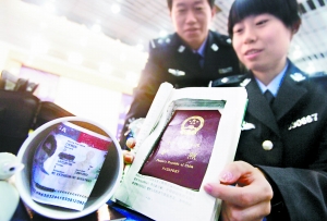 針對偷渡犯罪的猖獗,邊檢總站加大培訓(xùn)民警識別偷渡人員的力度,同時采取高科技檢測手段識別偽假證件。記者在現(xiàn)場看到,目前民警使用的最新式檢查護照簽證儀器,最小只有鼠標(biāo)大小,可隨身攜帶,還有快速“刷”護照的證件閱讀機,民警把護照在機器上一“刷”,讀取信息同時就能識別護照上的防偽標(biāo)識。