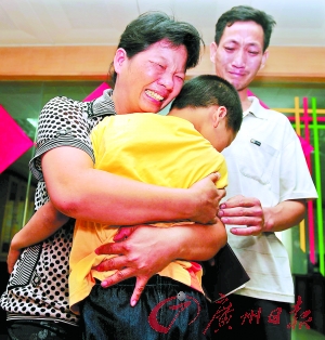 昨日,好消息終于傳來(lái),經(jīng)過(guò)DNA數(shù)據(jù)對(duì)比,“寶貝尋家”中編號(hào)為16的孩子被證實(shí)為東莞高埗鎮(zhèn)菜販顧先生夫婦的親生兒子顧金龍,他成為60名兒童中第二位找到親生父母的男童。昨日下午1時(shí)多,5年多未見(jiàn)過(guò)親生兒子的顧先生夫婦一把抱過(guò)兒子,喜極而泣。悲喜交集的母親含淚向民警下跪致謝。