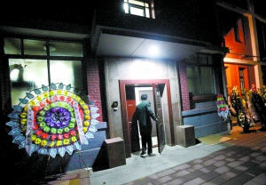 夜色還未褪盡,記者來到位于航天橋航天大院內(nèi)的錢學(xué)森靈堂外。位于一層的靈堂此時(shí)已是燈影幢幢,單元門外擺放的花籃、花圈并沒有被撤走,依舊簇?fù)碇睾蛟陟`堂門外。