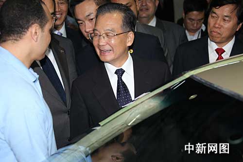 中新網(wǎng)11月7日電 當(dāng)?shù)貢r(shí)間六日下午,剛剛抵達(dá)埃及首都開(kāi)羅的中國(guó)總理溫家寶來(lái)到華晨汽車埃及工廠參觀。溫家寶將對(duì)埃及進(jìn)行正式訪問(wèn)并出席中非合作論壇第四屆部長(zhǎng)級(jí)會(huì)議開(kāi)幕式。