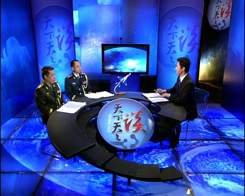 主持人:天下天天談,天天談天下,大家好,我是羅旭,歡迎您收看我們今天的節(jié)目。今天是中國人民解放軍空軍成立60周年的大喜日子,中國空軍舉行了規(guī)?涨暗膽c;顒樱覀兘裉臁短煜绿焯煺劇芬蔡貏e奉上一期節(jié)目,為人民空軍成立60周年獻禮,我們知道空天力量已經(jīng)成為衡量一個國家綜合實力的一項重要的指標(biāo),如何來解讀人民空軍的空天力量呢,今天我們請到兩位專家為您分析解讀,首先我們要歡迎的是中國人民解放軍國防大學(xué)的教授吳國輝先生,歡迎吳教授。