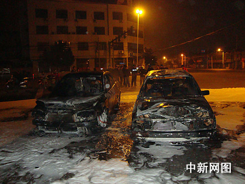 凌晨三點(diǎn)左右,明火被撲滅,但兩輛轎車已面目全非。